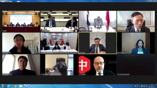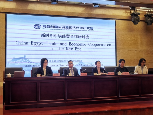 2021年10月27日下午,我院成功举办“新时期中埃经贸合作研讨会”。本次会议主要就新时期中埃经贸合作的新实践、新探索、新模式等开展讨论并提出相关政策建议。研讨会以视频会议的方式进行,由我院西亚与非洲研究所所长毛小菁研究员主持。商务部西亚非洲司贺松副司长、我院俞子荣副院长、埃及驻华商务公使艾哈迈德·扎基等出席会议并致辞。来自埃及商会联合会、埃及苏伊士运河经济区管理总局、埃及投资与自由区管理总局、国家开发银行、中国信息通信研究院、中非泰达、中建国际及滴滴出行等机构和企业代表出席了本次会议并发言。