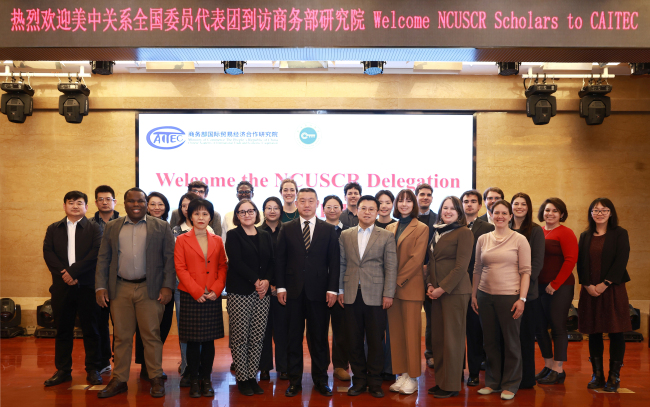 1月8日,美中关系全国委员会中青年学者代表团一行到访商务部研究院,双方就中美经贸关系等议题开展交流。商务部研究院院长王雪坤会见美方代表团,出席交流会并发言。北京大学国际关系学院教授、中外人文交流研究基地执行主任王栋,以及北京大学、对外经济贸易大学、中央财经大学学者,商务部研究院欧洲研究所负责人和研究生代表等共约30人参加本次活动。