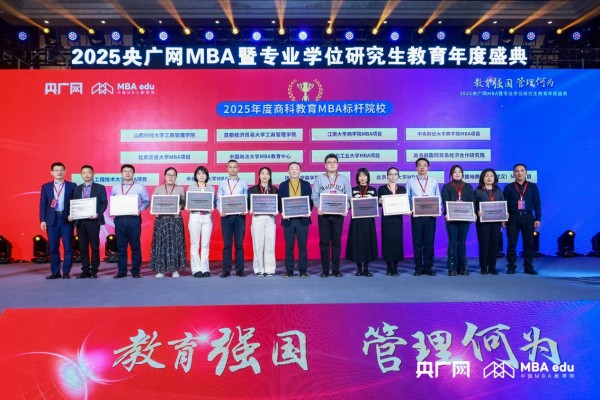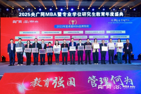 11月21日,由中央广播电视总台央广网(以下简称“总台央广网”)主办,中国MBA教育网承办的“2025央广网MBA暨专业学位研究生教育年度盛典”在北京隆重举办。来自全国百余所商学院的200多位院长、党委书记、中心主任、企业家代表等齐聚一堂,共商教育强国大计,共同书写管理教育事业的新篇章。