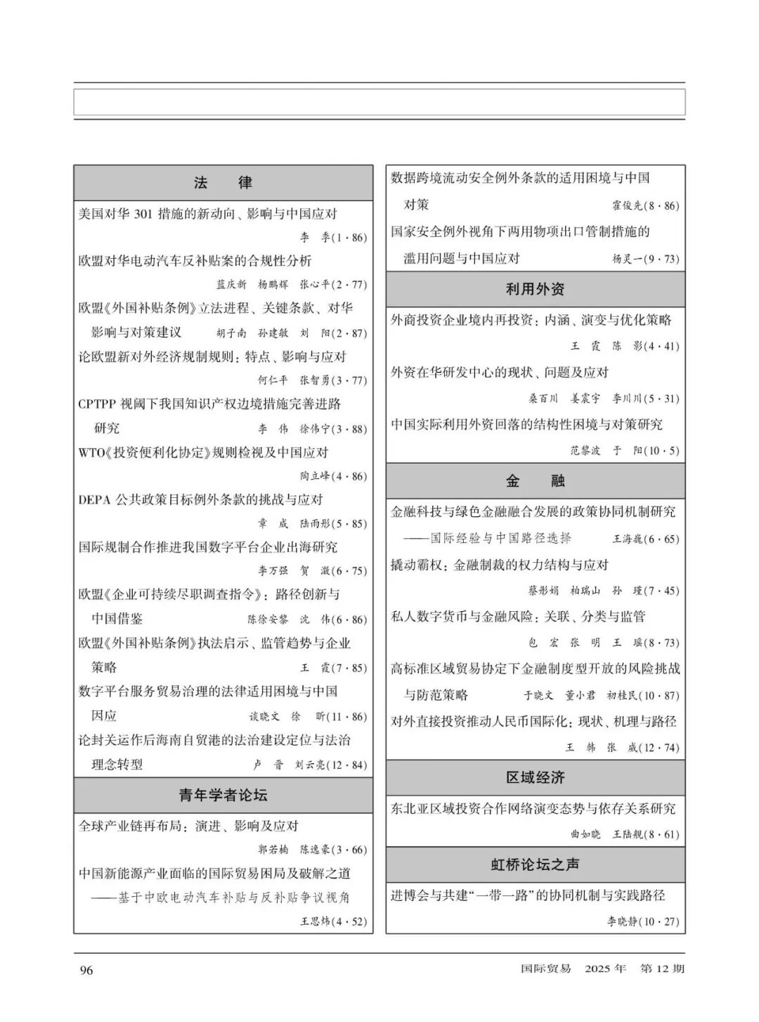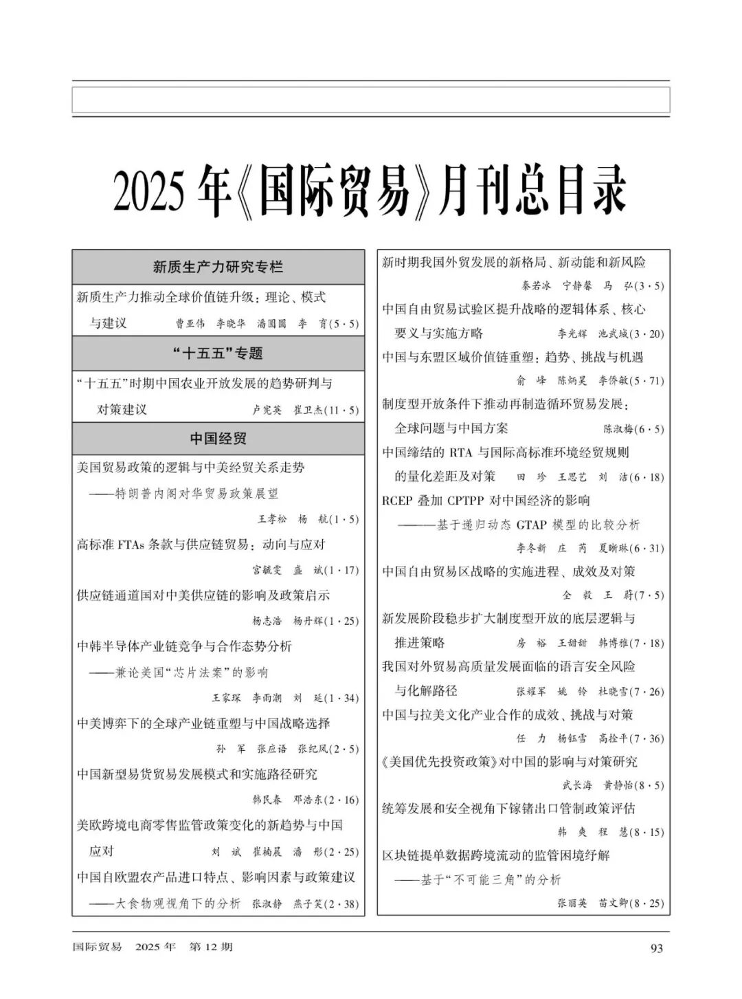 2025年《国际贸易》月刊总目录